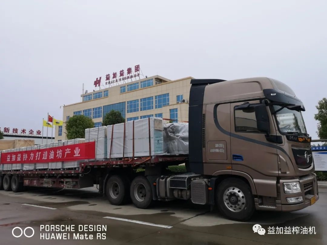 國慶節(jié)后開工第一天,訂單忙、生產忙、發(fā)貨忙......益加益產業(yè)園區(qū)內一派繁忙景象。在發(fā)貨現(xiàn)場,運輸物流車輛忙碌不停,一輛接一輛緩緩駛出,一臺臺“益加益制造”的高品質榨油機,發(fā)往廣西自治區(qū)百色市田林縣各個山茶油專業(yè)合作社。