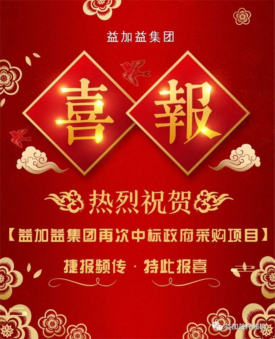 金秋益加益集團(tuán)又中標(biāo)政府采購(gòu)榨油機(jī)項(xiàng)目
